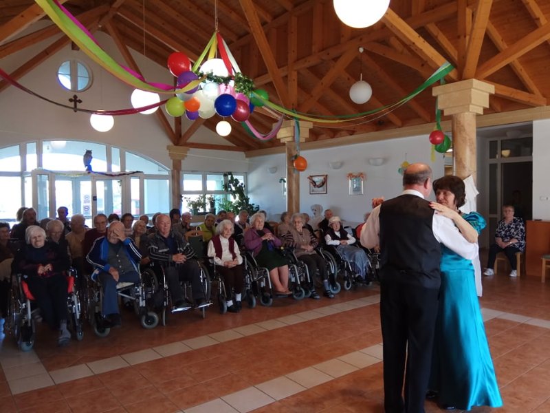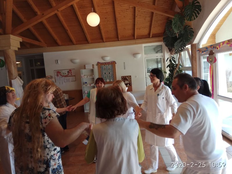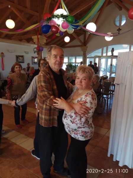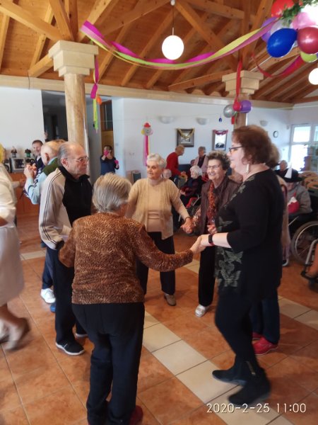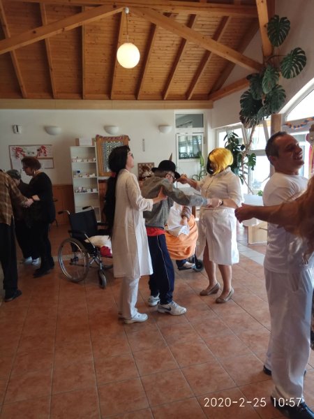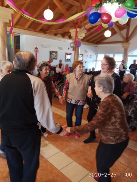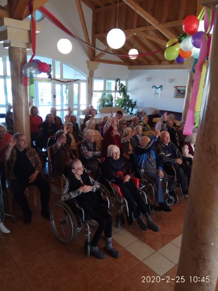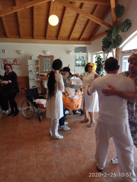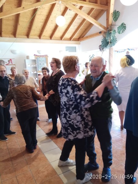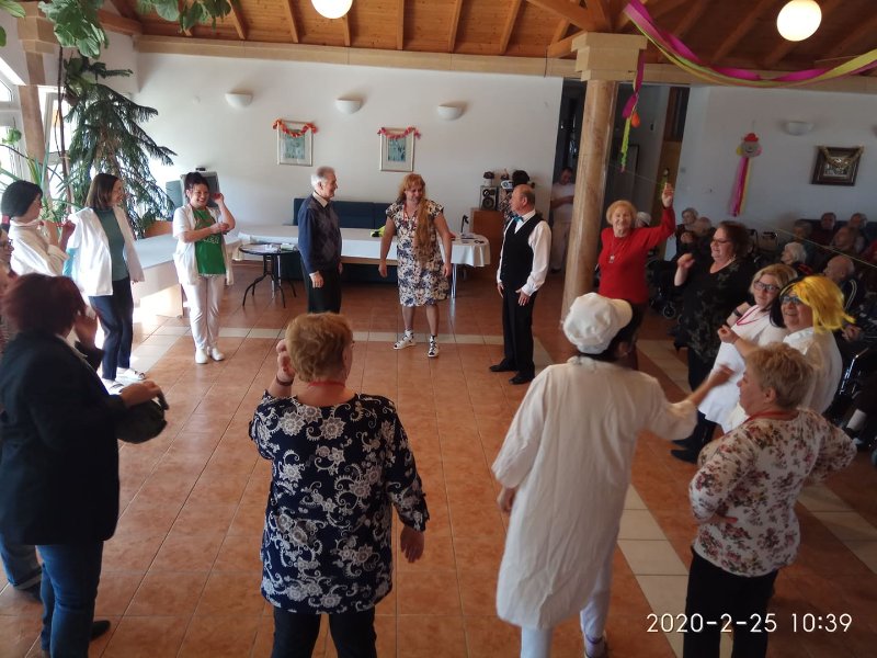 Február végén ünnepeltük a tél végét jelentő farsangot. Minden résztvevő izgatottan készült, hiszen a lakók közül többen jelmezt öltöttek, a dolgozók közül pedig sokan részt vettek kis színdarabunk előadásában. Eljött közénk a Gyuricza házaspár is, fiatalos, lendületes táncukat ámulattal néztük. Szerencsére minket is bevontak a mozgásba, hiszen senior táncot tanítottak be a résztvevőknek. Meghívtuk a nágocsi otthon lakóit is, együtt ünnepeltünk ezen a napon.