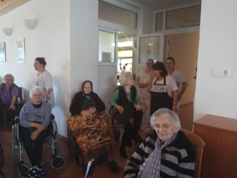 Az otthonban élő hölgyeket köszöntötték férfi lakóink. Kedves versekkel, mondókákkal, dalokkal kedveskedtek nekik. Műsoruk igazán meghatóra sikerült, a hölgyek utólag elmondták, hogy nagyon jól esett nekik a köszöntés.
