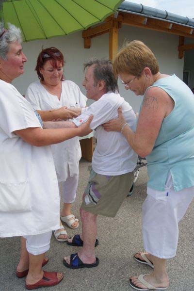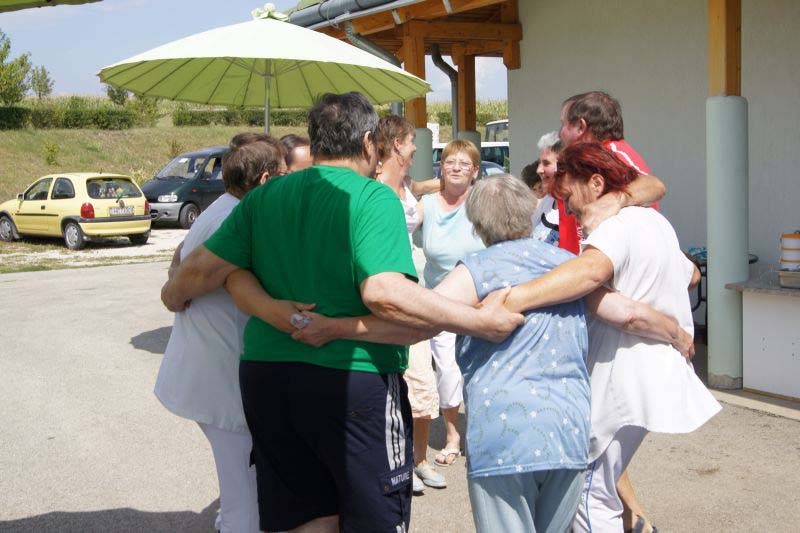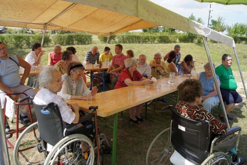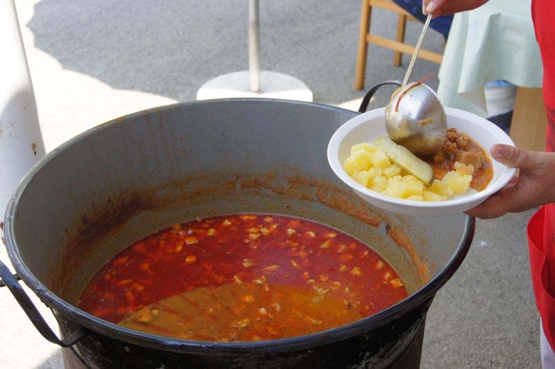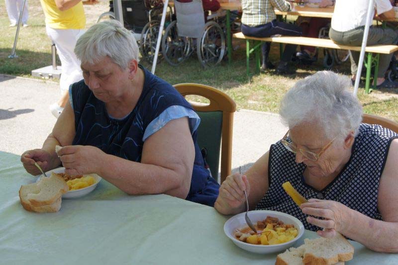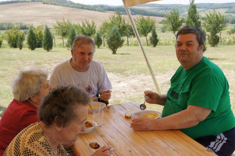 Főszakácsnak erre a napra a népszerű Gyuri lett kinevezve. Ami fokozta a várakozás izgalmát, az az üstökben rotyogó-fortyogó gulyás illata volt, mely az egész környéket betöltötte. Az ebéd nagyon finom volt. A hangulatot fokozta Zsoltink cigánymenyecske produkciója. Mindenki jól érezte magát, énekelt, táncolt még a „sánta, béna” is. Elfelejtettük összes fájdalmunkat.