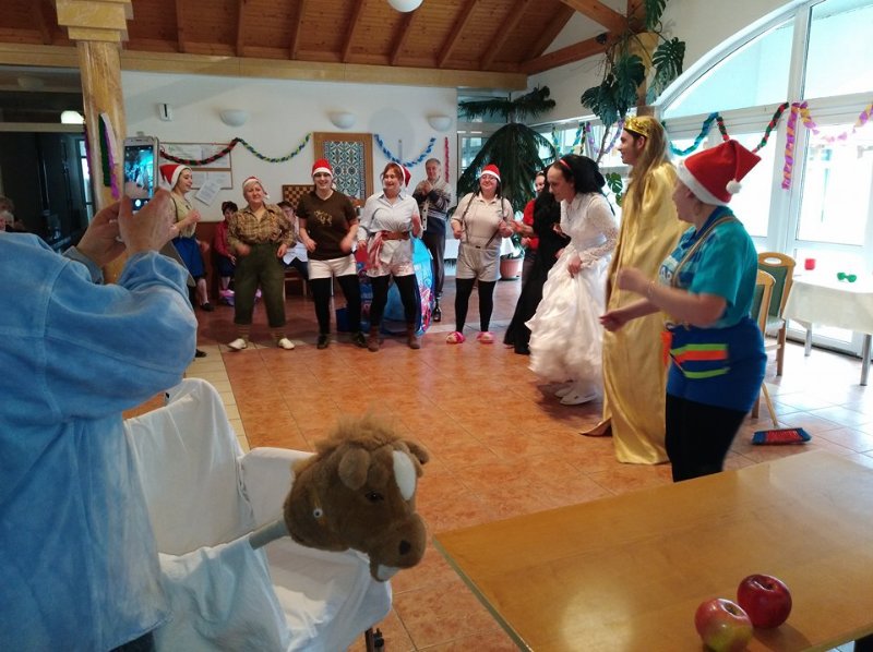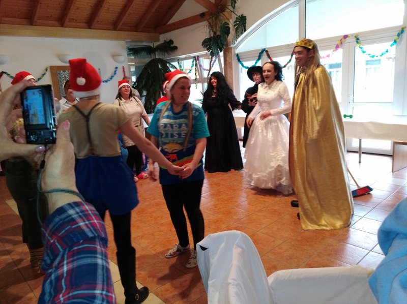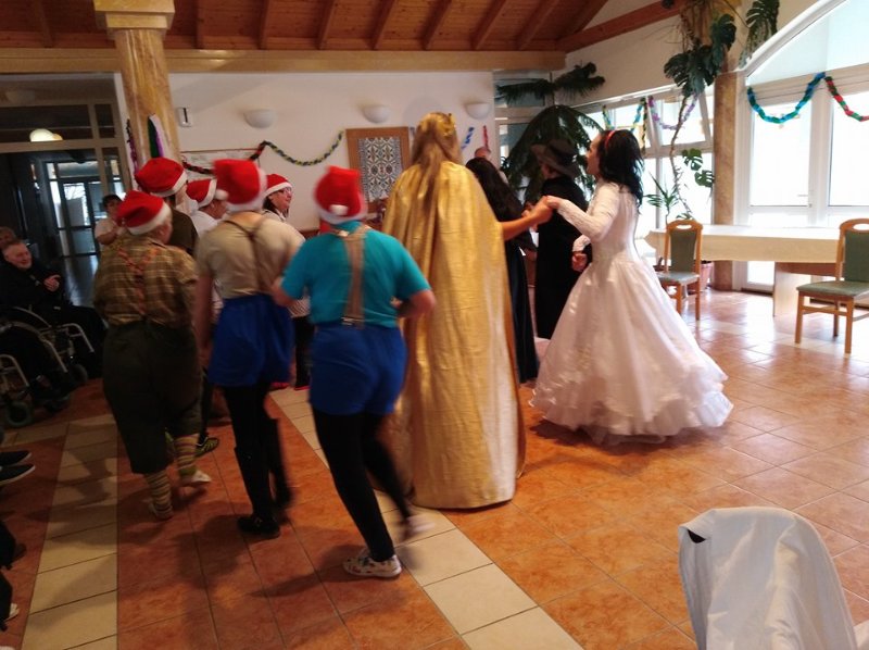Február elején ünnepeltük a tél végét, farsangi mulatságot tartottunk. Sajnos a telet nem sikerült elűzni, viszont mi jól mulattunk. Dolgozóink 2 vicces színdarabbal készültek, melyen lakóink is jót derültek. Gondozottjaink közül is többen maskarát öltöttek és bábjelenetet is előadtak. A hangulat nagyon jó volt, zárásként farsangi szalagos fánkot ettünk.