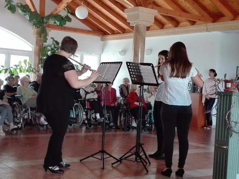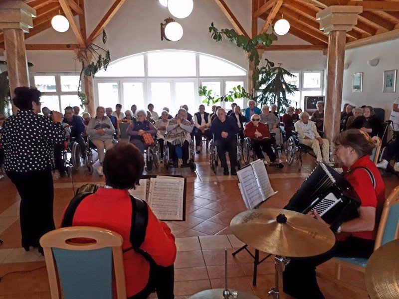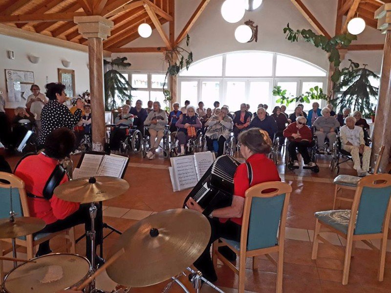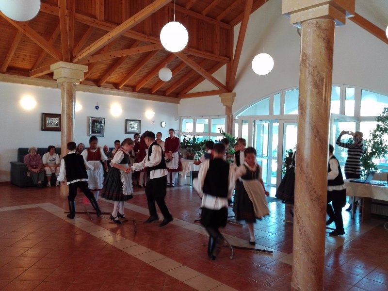 A Gyuricza házaspár a tőlük már megszokott módon varázsolták el a nézőket szalontáncukkal. A Lajtha László Zeneiskola növendékei Kocsis Éva tanárnő vezetésével látogatták meg lakóinkat, hogy bemutassák zenei tudásukat, nagy örömet szerezve vele. Sümegi Ibolya néni törökkoppányi népdalokkal ismertetett meg minket. Rákóczi Szilvia énekesnő Tamásiból jött el hozzánk, hogy a sokak számára szép emlékeket felidéző táncdalokat énekelve emlékezhessenek fiatalságukra. A törökkoppányi népi táncos fiatalok láthatólag évről évre ügyesebbek, táncuk igazán látványos, profi munka. A Muzette harmónika együttes is nagyon kellemes perceket szerzett a hallgatóságnak. Többek kedvet kaptak egy kis táncra. A képek magukért beszélnek!
