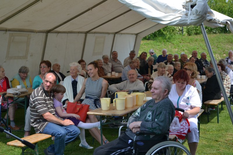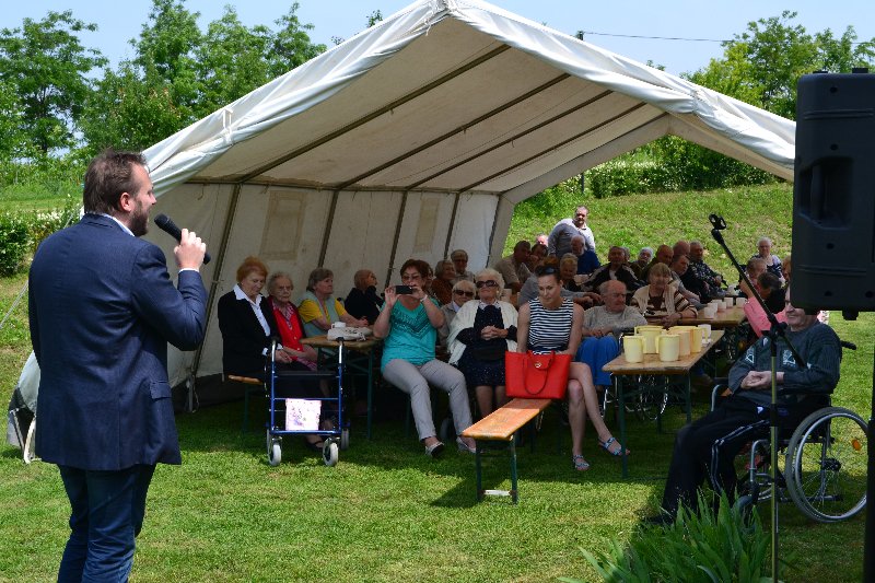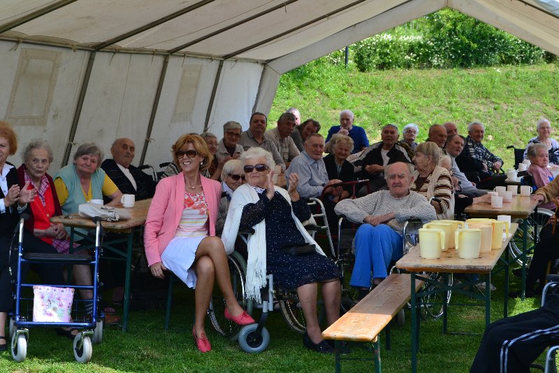 Június 1-jén kerti partit rendeztünk az otthon kertjében. A május elején állított májusfát népviseletbe öltözött kislányok táncolták ki. Az otthon lakóinak nagy örömére elfogadta meghívásunkat Feke Pál művész úr, aki mindannyiunk által ismert, híres dalokat adott elő. Így vele együtt énekelhettük az István a király, a Honfoglalás híres dalait és más szép dallamokat. A gondozottak viszonzásul egy magyar népdallal és közös tánccal kedveskedtek.