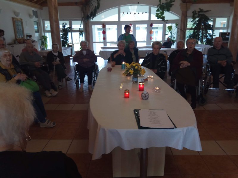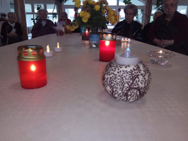A Koppányvölgye Idősek Otthonában megemlékeztünk e jeles egyházi ünnepekről. Lakóink számára igen fontos, hogy méltóképp felidézhessék elhunyt hozzátartozóik emlékét, hiszen sokan közülük nem tudnak már személyesen eljutni a temetőkbe, hogy leróják kegyeletüket szeretett halottaik előtt. Számukra különösen fontos, hogy bensőséges, megható megemlékezés keretében felidézzük szeretteik életét, cselekedeteit, kegyelettel megemlékezzünk róluk. A mai délelőtt könnyeket csalt minden jelenlévő szemébe.