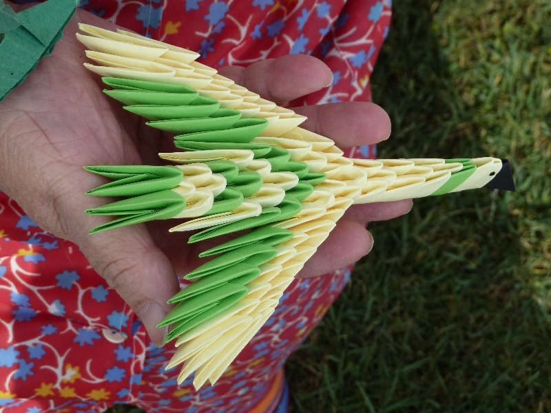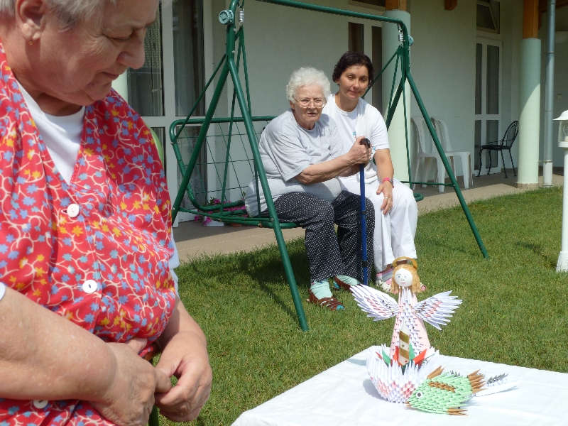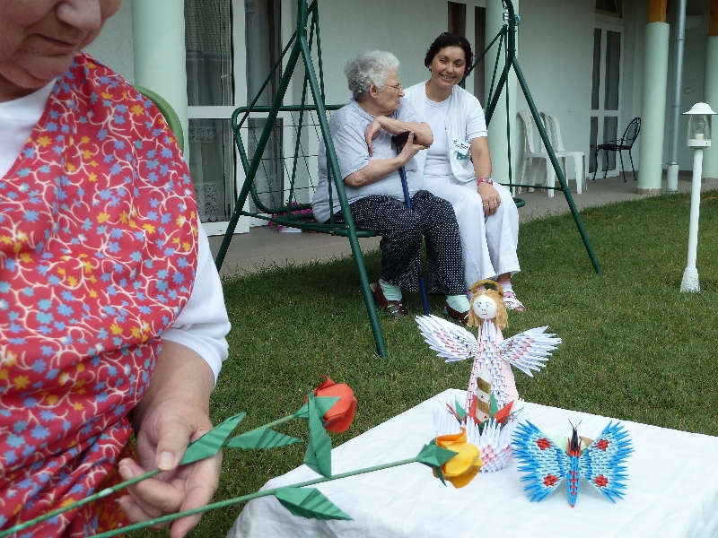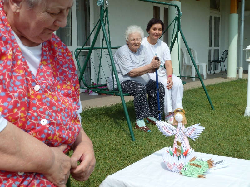 Mindannyian megcsodáltuk az általa készített origami figurákat. Délelőtti foglalkozásunk keretében átadta számunkra az origami készítésének titkait, és együtt készítettünk szebbnél szebb díszeket.