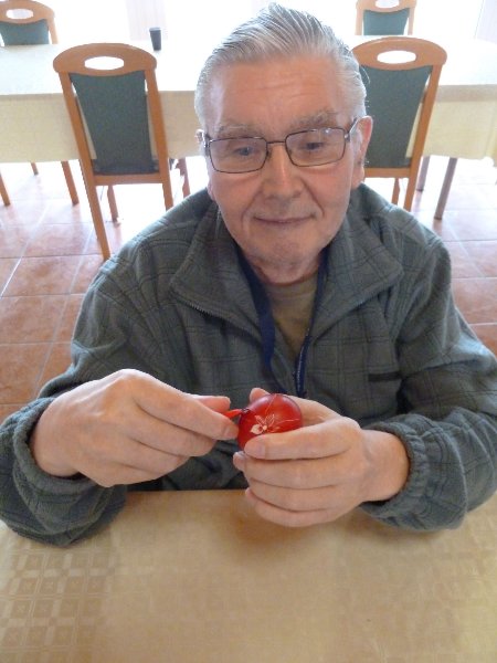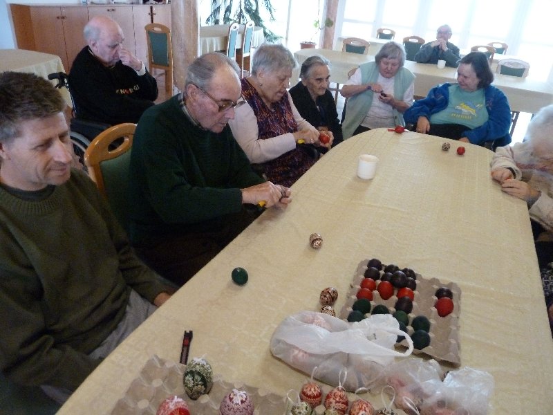 Húsvét előtt lakóink szinte gyermeki rajongással kezdtek bele a tojáskarcolásba, melyet a törökkoppányi Márkus Zoltánné mutatott be nekik.